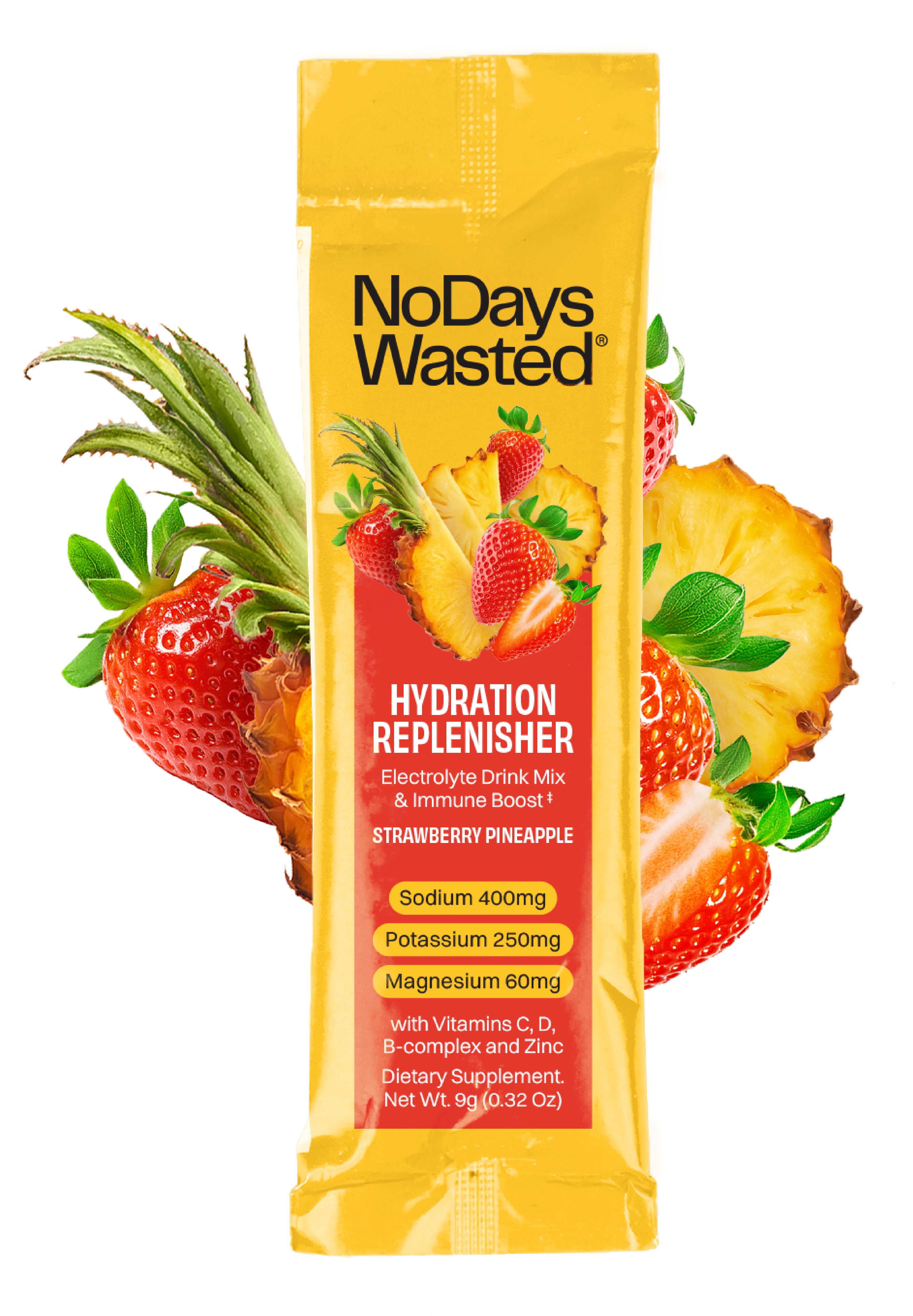 Hydration anytime, anywhere with immune support. Dehydration and depleted electrolytes are 20% of the problem.