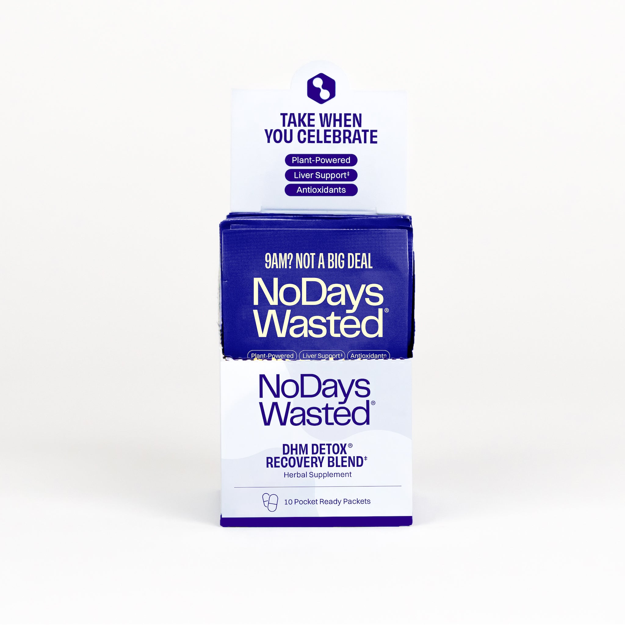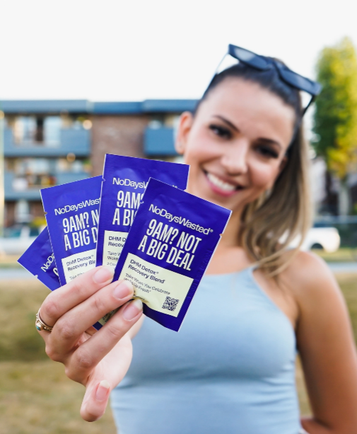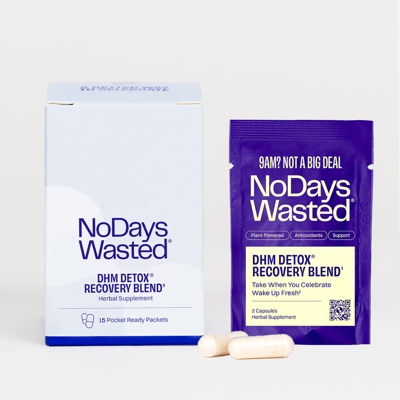 I have referred No Days Wasted to so many friends and family! Whether it’s a music festival, bachelorette party or vacation, I always make sure to pack my DHM Detox. It definitely helps me feel more energized, clear headed and productive the day after drinking. What a great invention!!